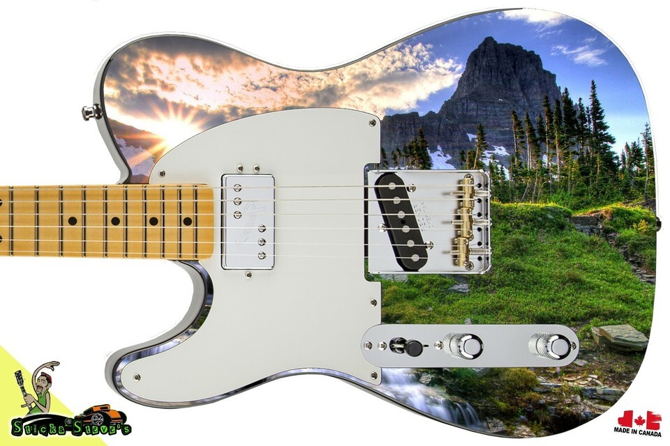 You are getting one sheet symmetrically sized too fit, up too 21" (Max), guitar body wrap vinyl sheet that will cover the front side of your guitar for a Left Handed Player.