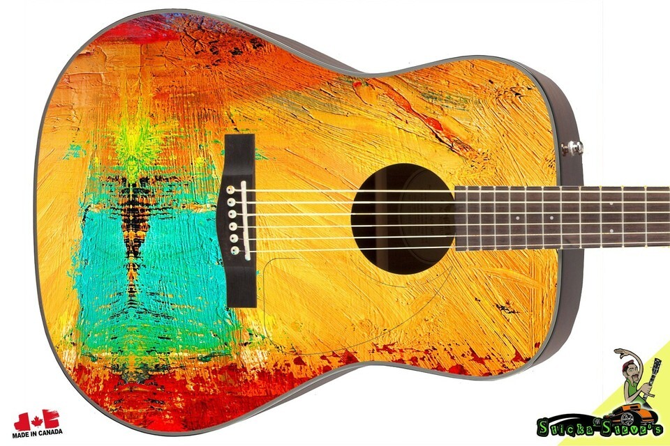 Acoustic Guitar Skin Axe Wrap Re Skin Bass Reface DIY Pastel Oil Paint Fall 075