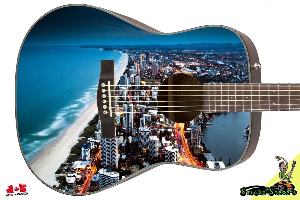 Acoustic Guitar Skin Body Reface Cover Custom Art Miami Vice Nights 071