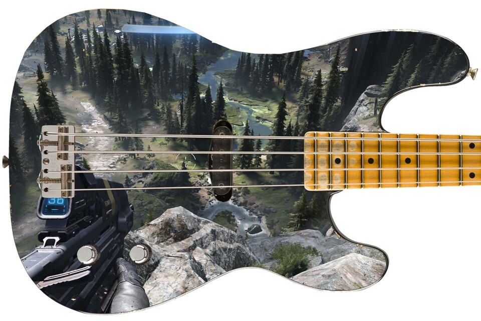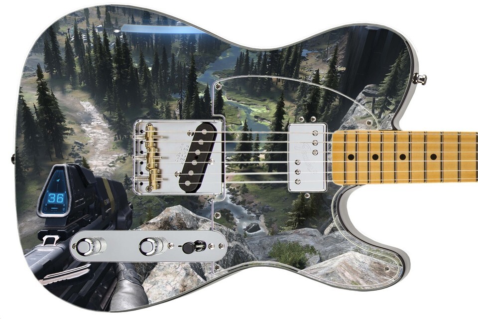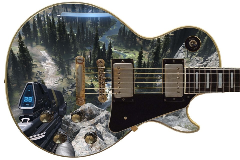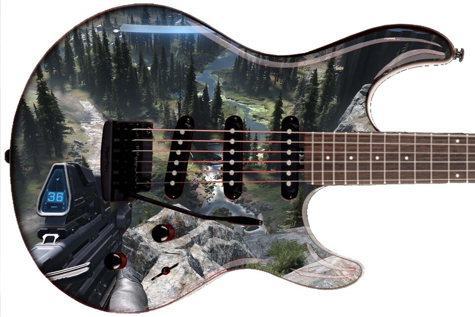 Guitar Skin Axe Wrap Re-skin Electric Bass Reface DIY Gamers Paradise Halo 1658