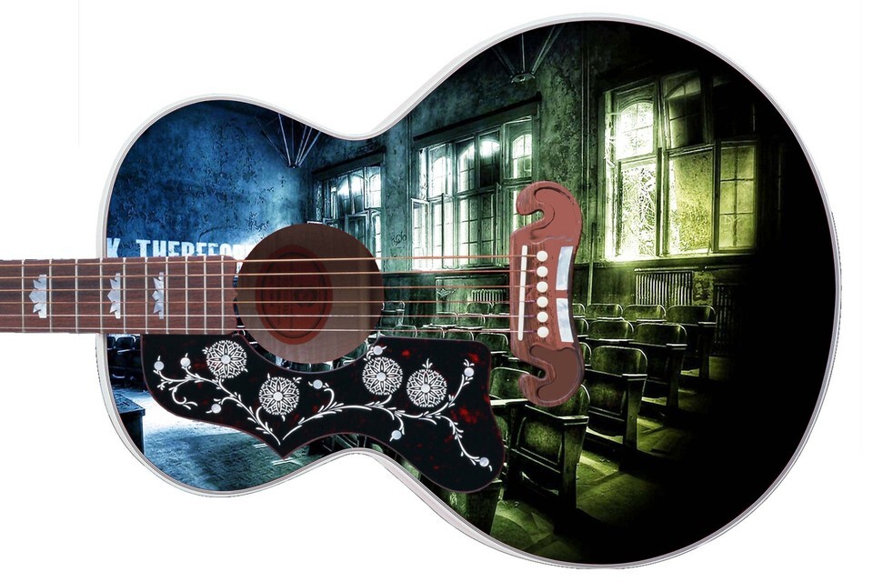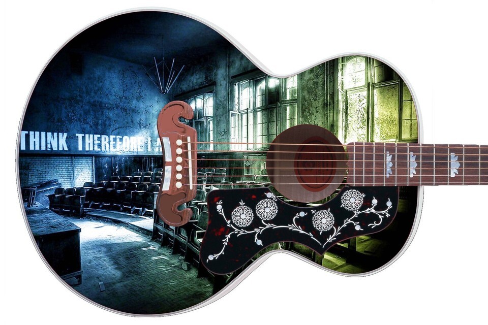 Guitar Skin Wrap Axe Re-Skin Acoustic, Pickguard -Think Before the Classroom 032