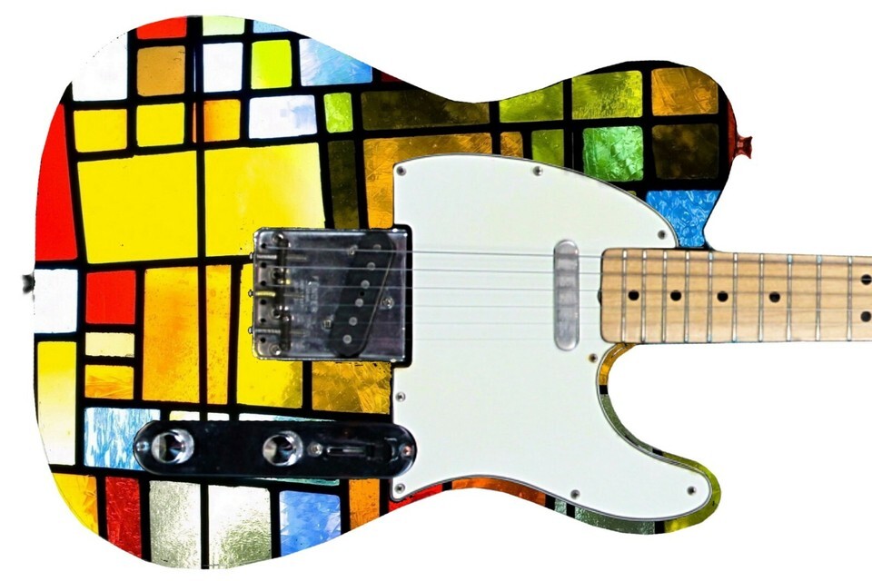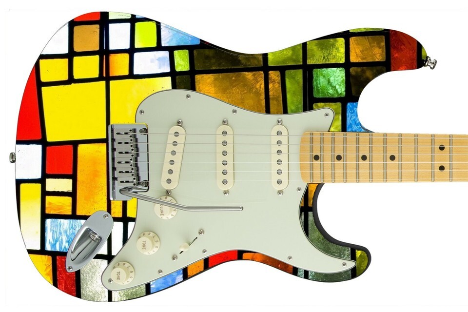 Guitar Skin Axe Wrap Re-skin Bass Electric Reface DIY Vintage Old Stained Glass