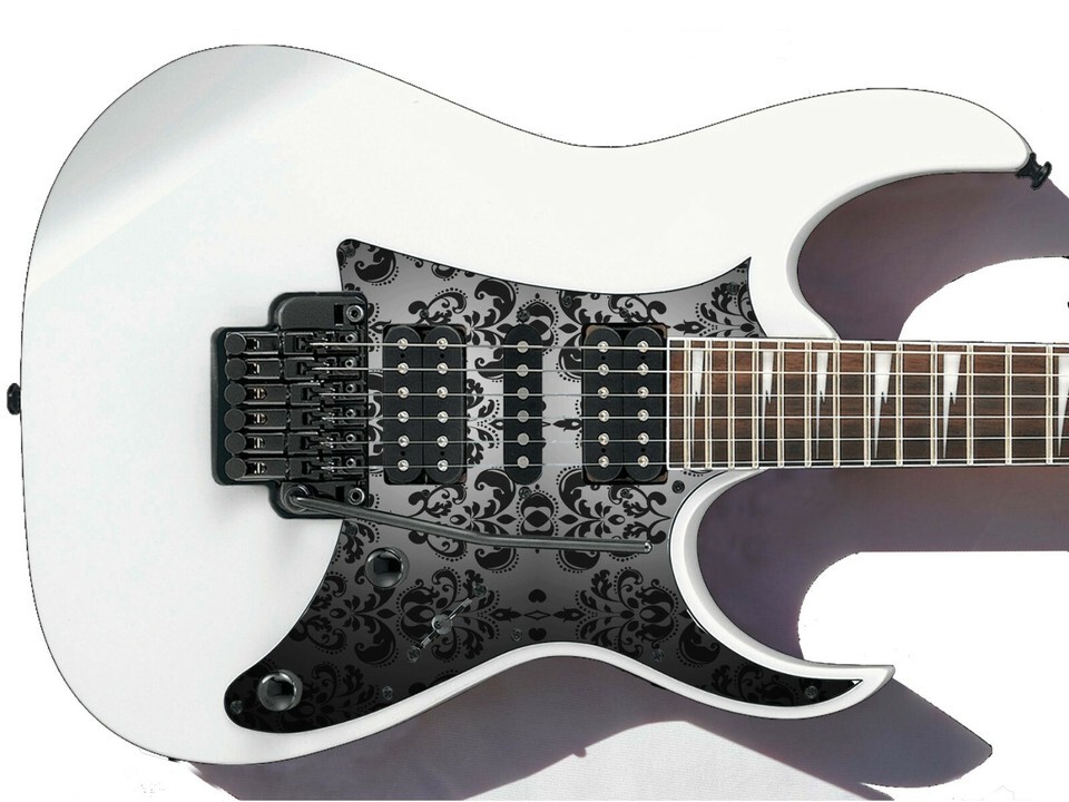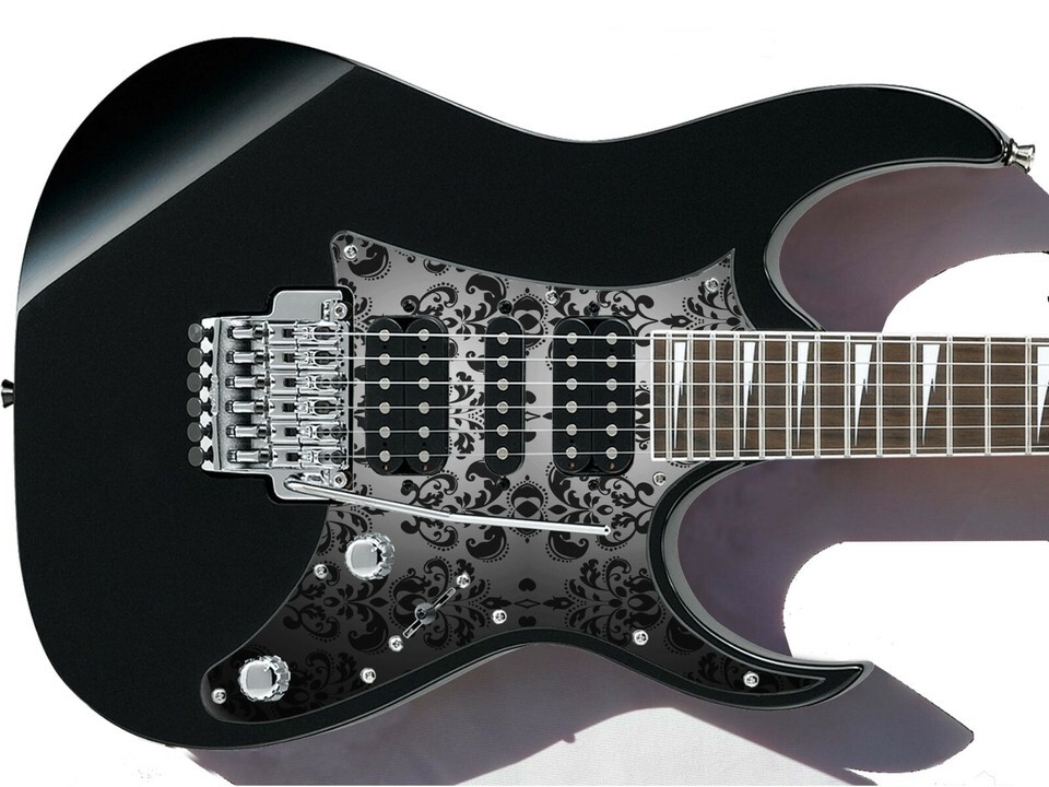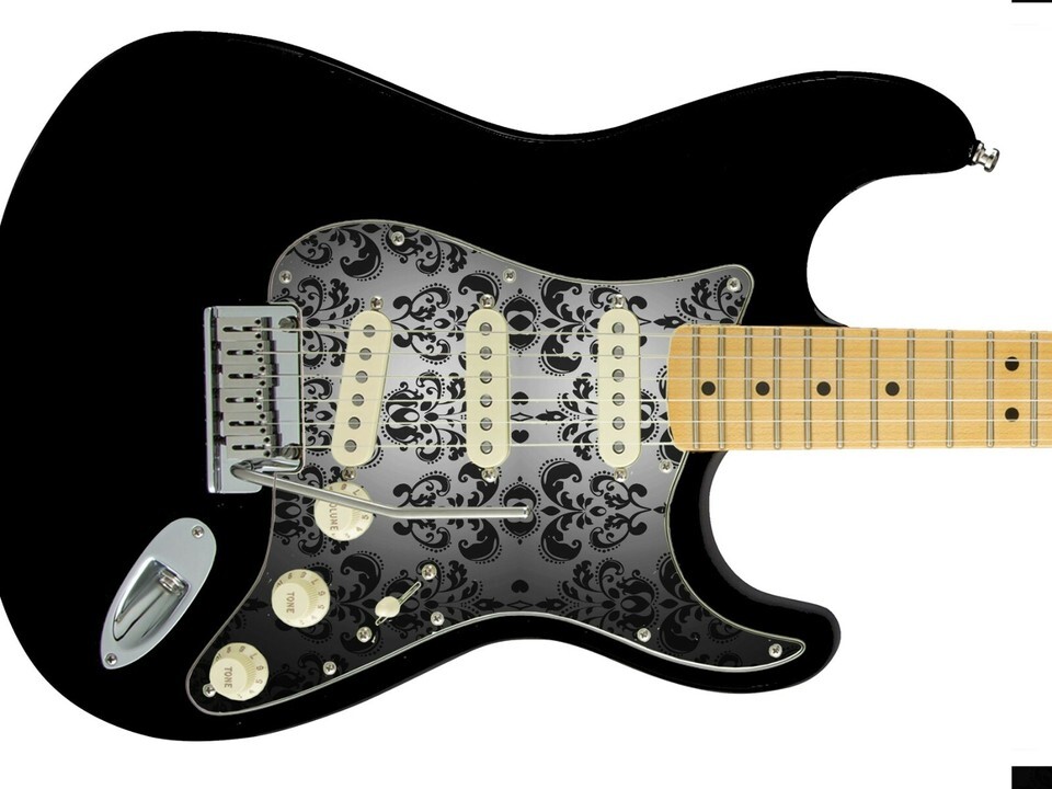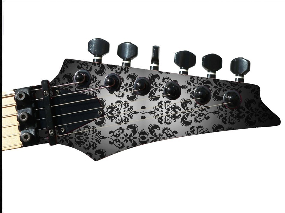 Pickguard Headstock Tremolo Skin Wrap Reskin for Guitars - Black Damask 867