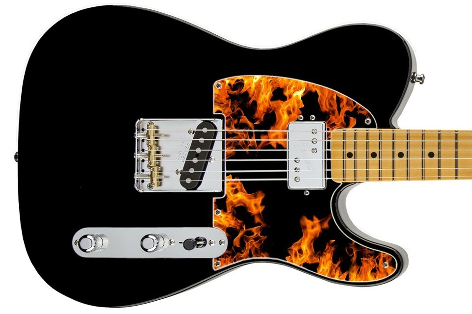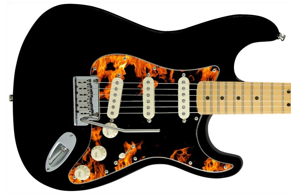 Pickguard Headstock Tremolo Skin Wrap Reskin for Guitars - Shot Down Flames 629