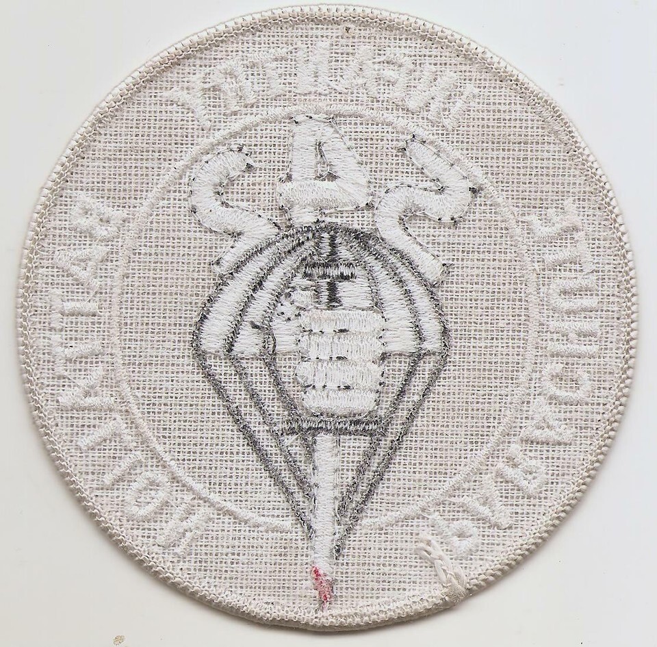 US Army 542nd Parachute Infantry Battalion - Three and a half inches diameter, embroidered on a fine thread gray felt with mesh backing and light coating of basting wax on back also.