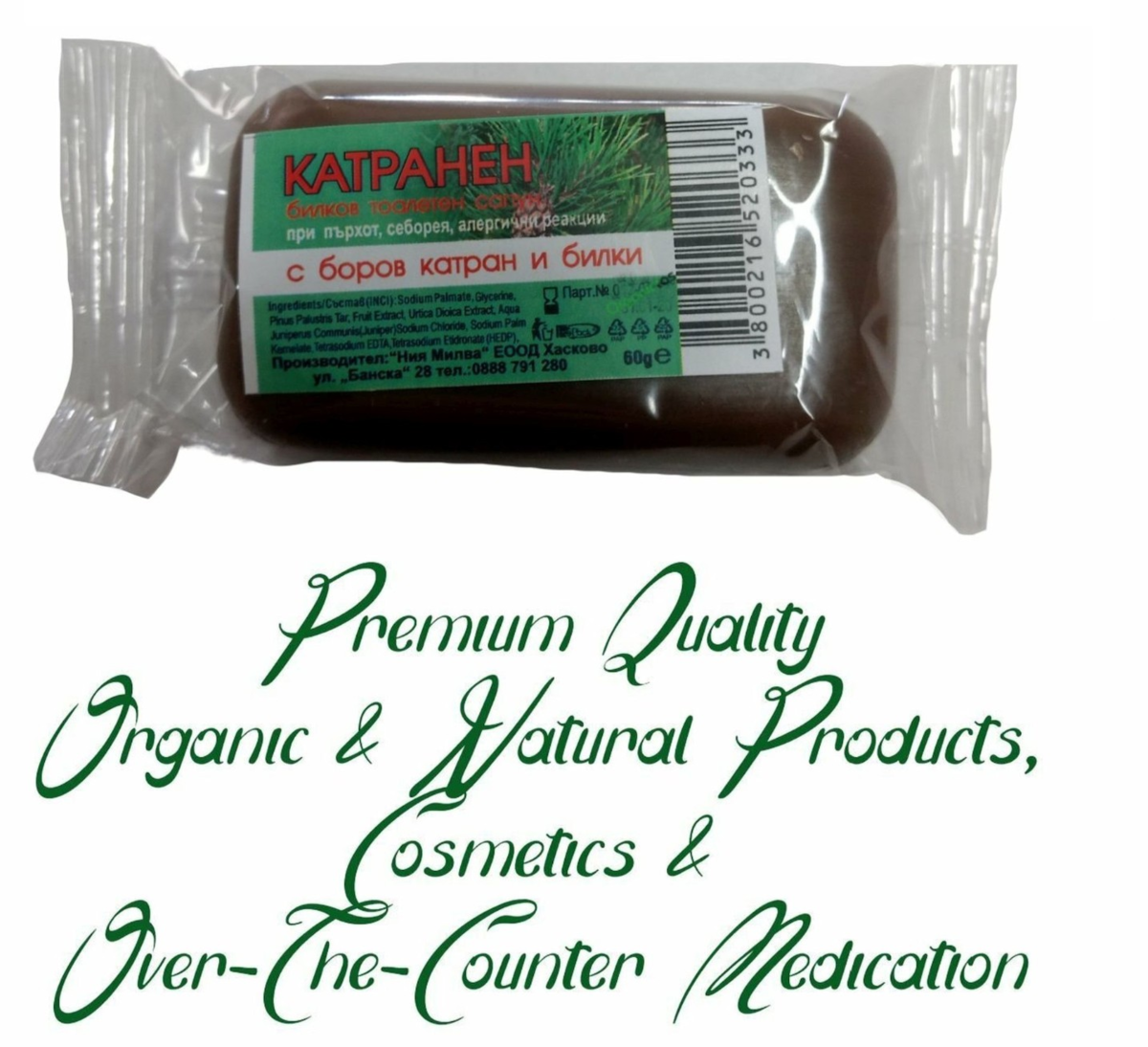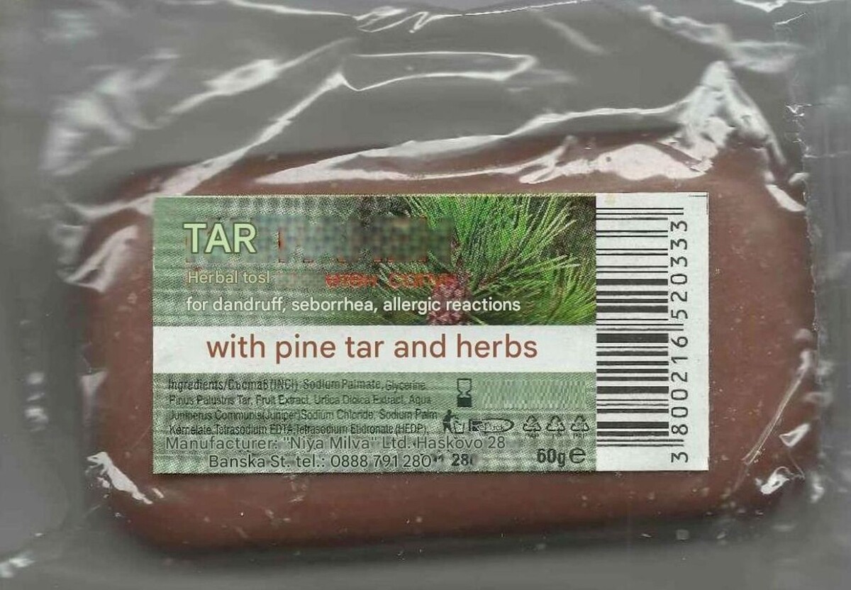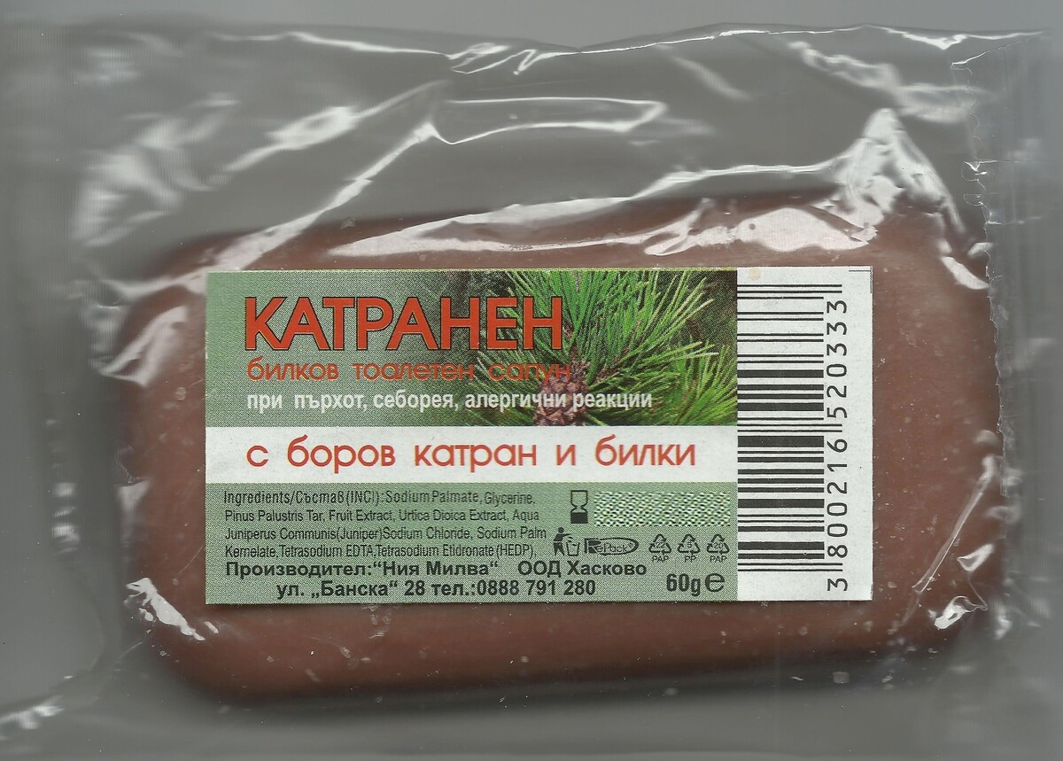 Milva Bar Soap w/Pine Tar & Herbs for dandruff seborrhea Bulgaria 60 g = 2.1 oz
