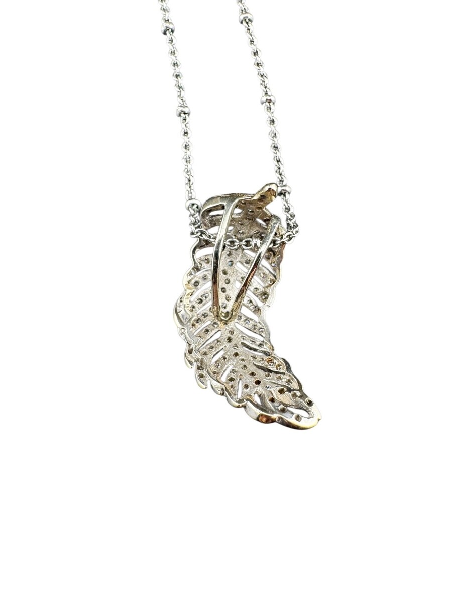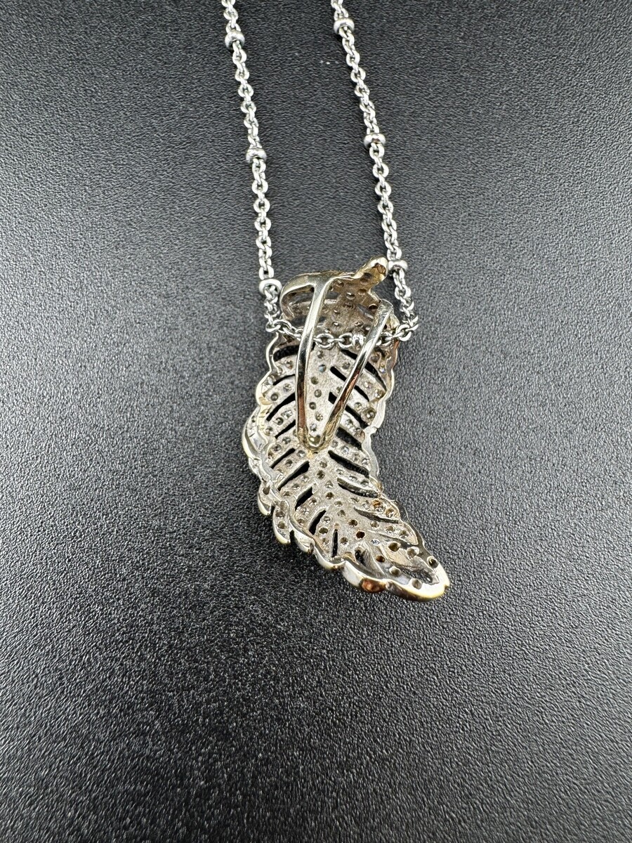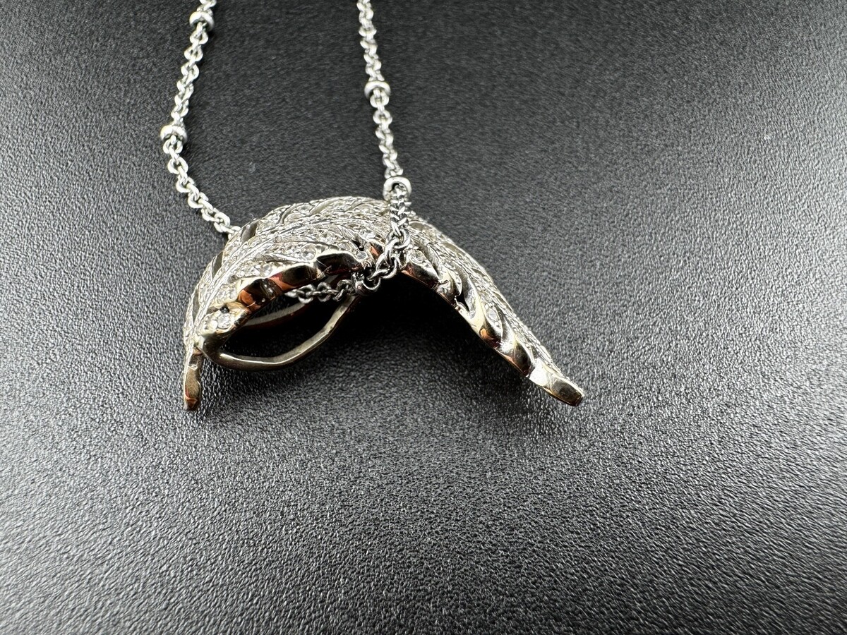 Antique Curved Feather Diamond Pendant, 14k or 18k white gold, 3.2g - No Chain