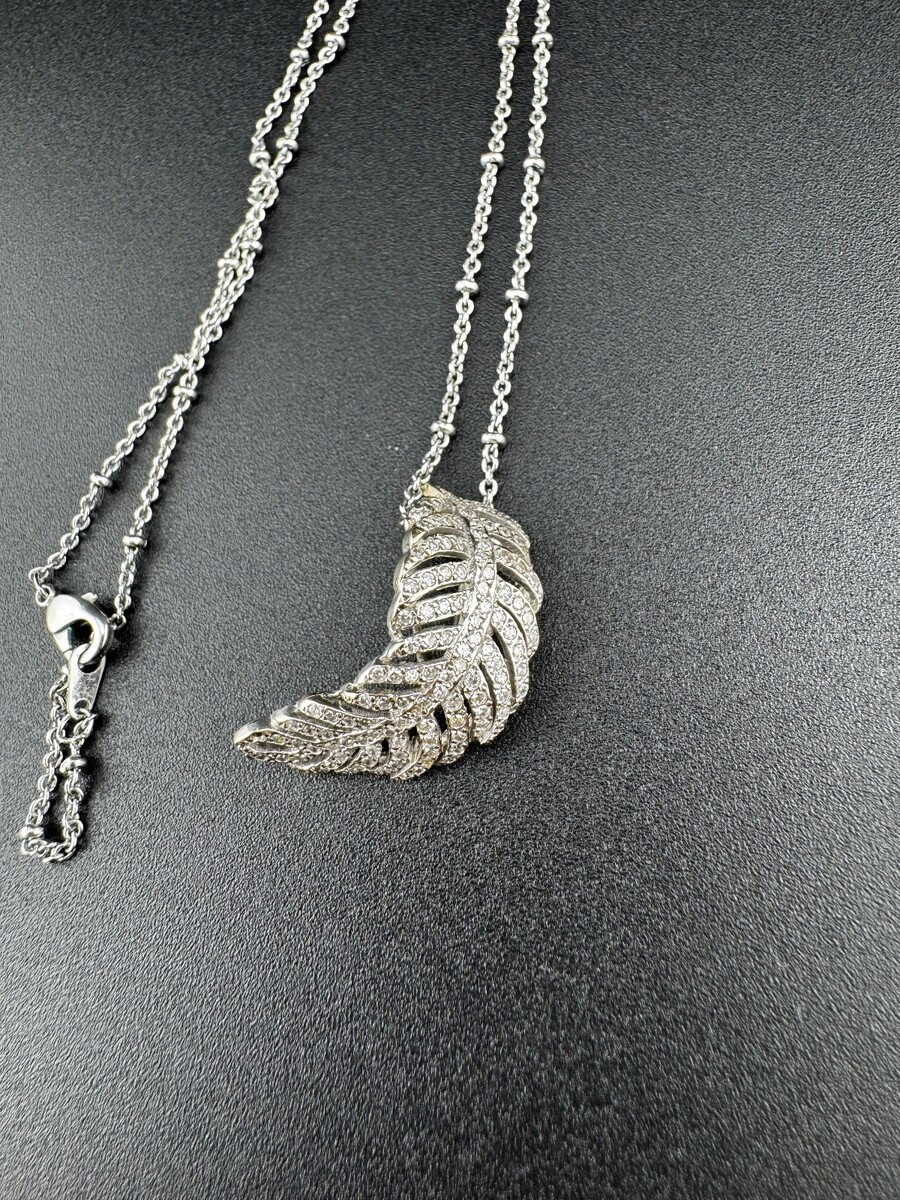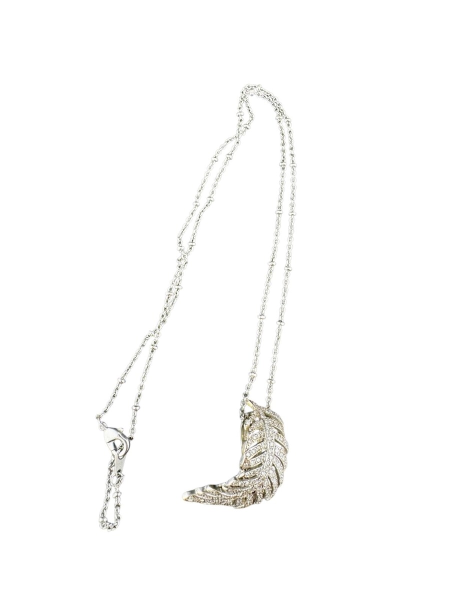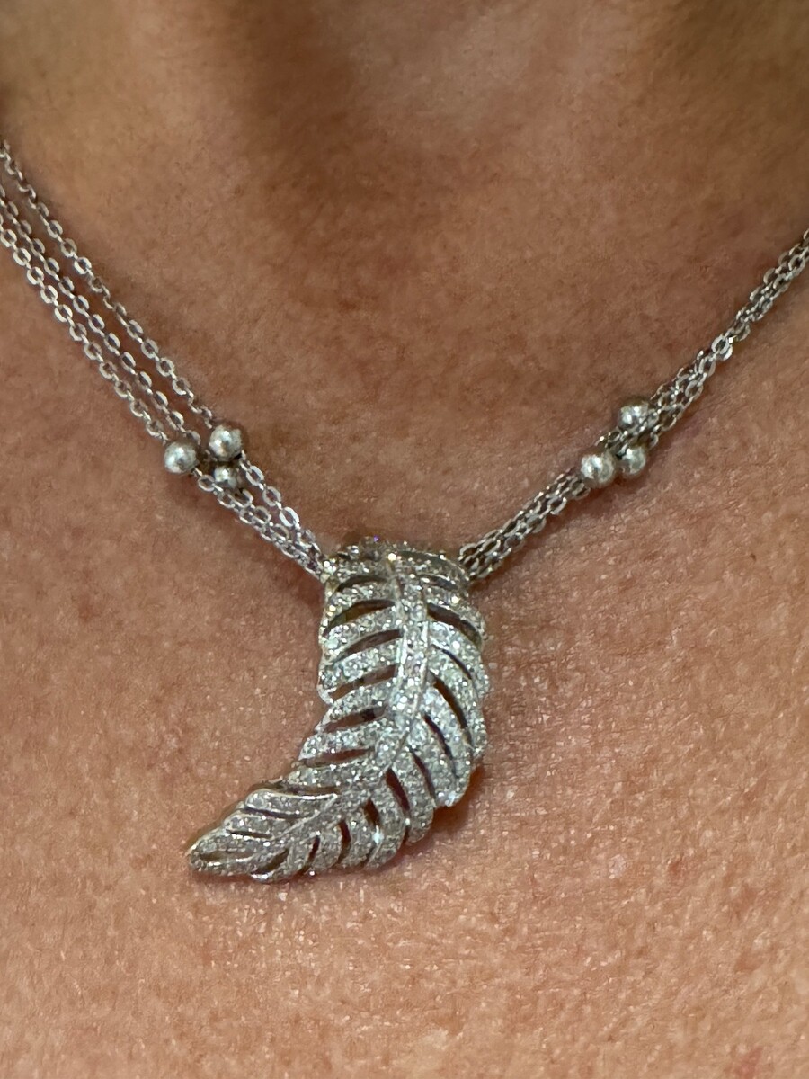 Antique Curved Feather Diamond Pendant, 14k or 18k white gold, 3.2g - No Chain