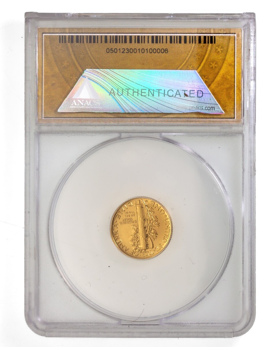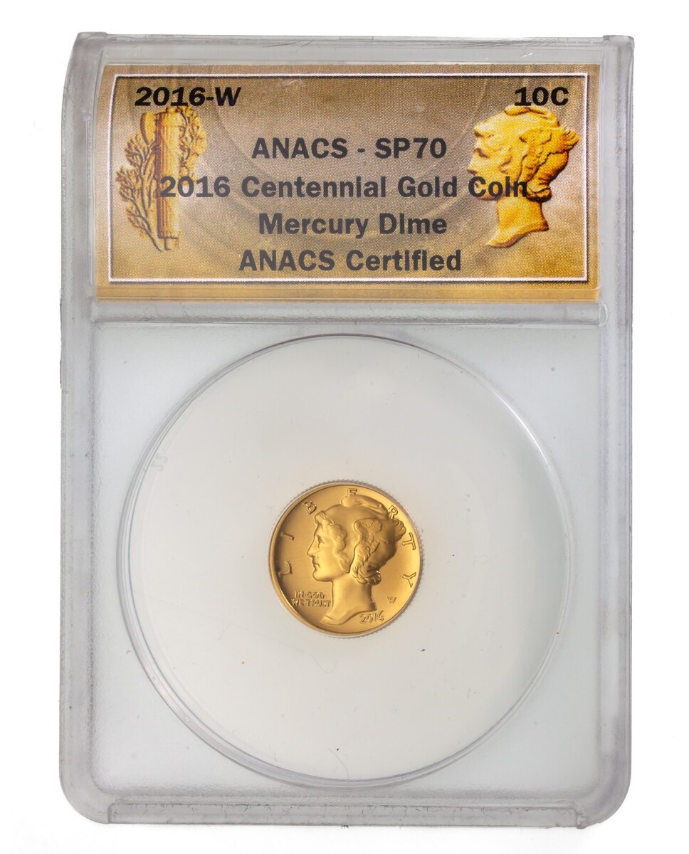 2016-W 10C Centennial Gold Mercury Dime Graded by ANACS as SP70 Box CoA