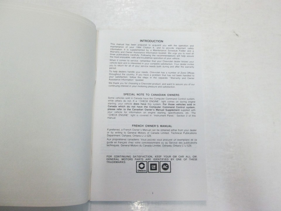 1984 CHEVROLET CITATION II OWNERS DRIVERS MANUAL