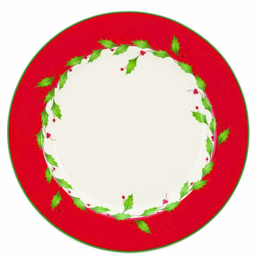 Wide red rim, green banding & red and green holly motif |