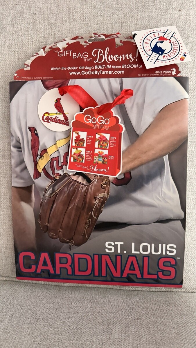 The St. Louis Cardinals Baseball Large GoGo Gift Bag is a officially licensed Major League (MLB) product featuring the iconic baseball team, the St. Louis Cardinals. This 10?x11.5? bag is designed with ribbon handles for easy carrying, making it an ideal gift for any baseball fan. The colorful design and inclusion of tissues make it a practical and festive.