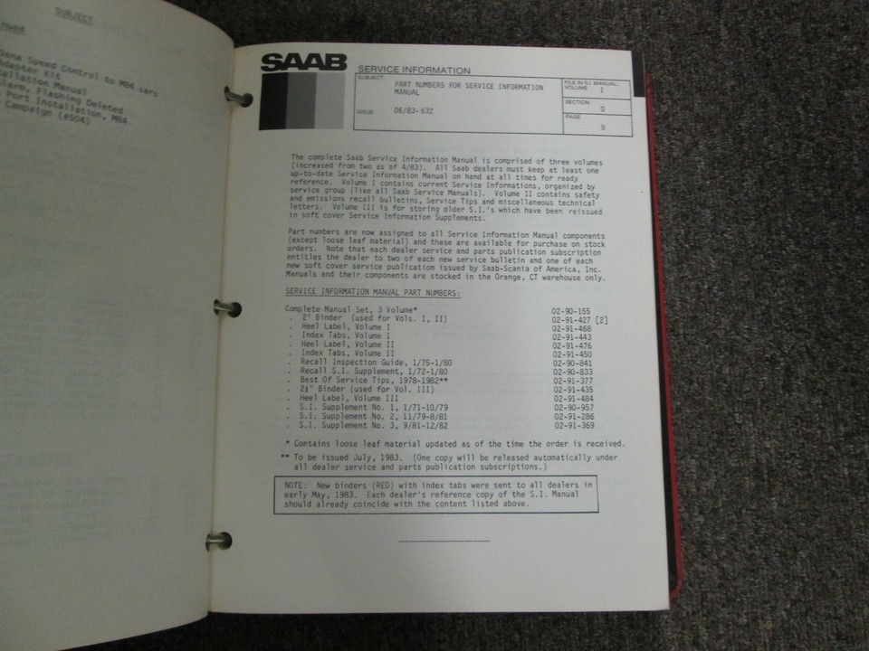 1983 1984 1985 SAAB M84 900 99 SERVICE INFORMATION SUPPLEMENT MANUAL SET