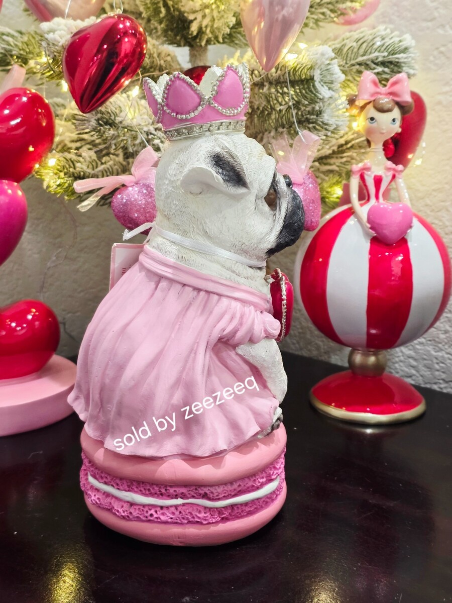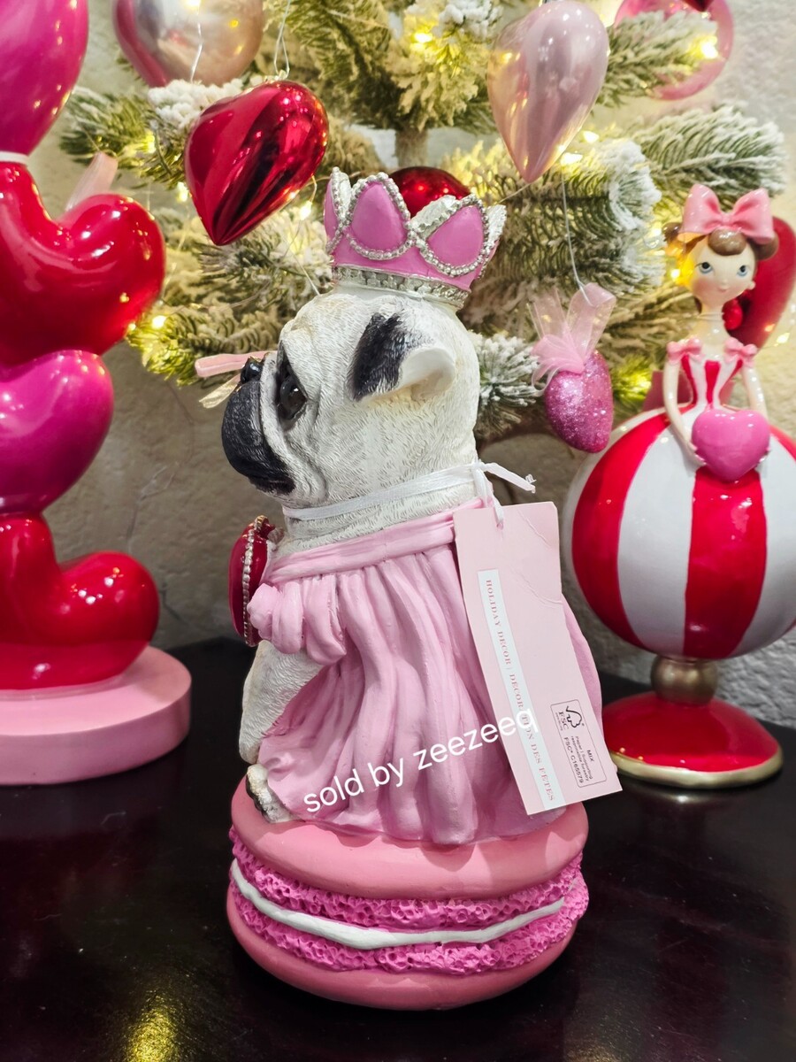BELLA LUX Valentines Pug Princess On A Pink Macaron Figurine Statue 10" NEW