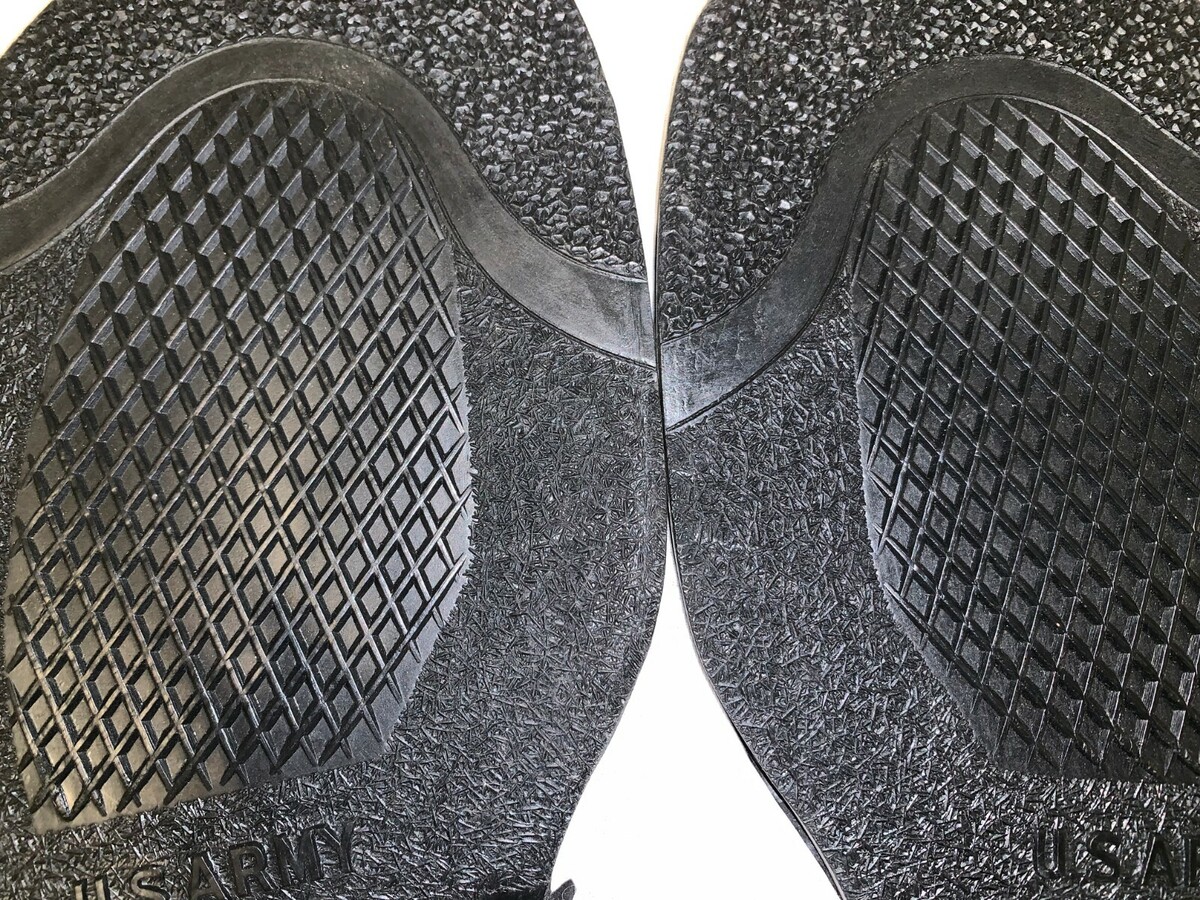 USA-made New Old Stock rubber half soles are authentic 1940?s-50?s US Government -issued supplies for military footwear. They appear to have been manufactured at the time by ?Ply Co?.