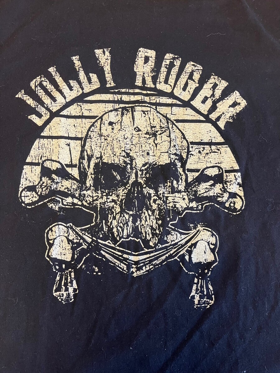 Color/Design: Jolly Roger skull/flag style graphic (black or dark base; match your shirt color in listing)?