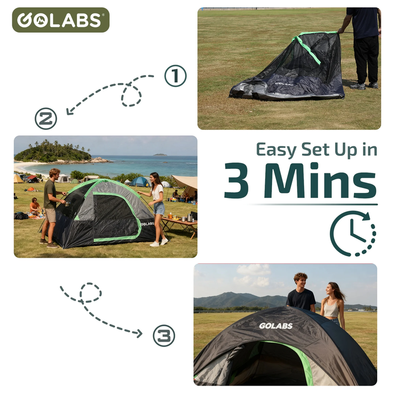 Experience quick and comfortable camping with the Golabs CT1 2-Person Tent! Setting up your shelter is a breeze, taking only about 3 minutes. Stay dry in PU1500mm waterproof protection and enjoy fresh air through the mesh top and door. Weighing just 4.4 lbs and packing small, this lightweight and portable tent is your ideal partner for hiking, beach trips, and weekend adventures.