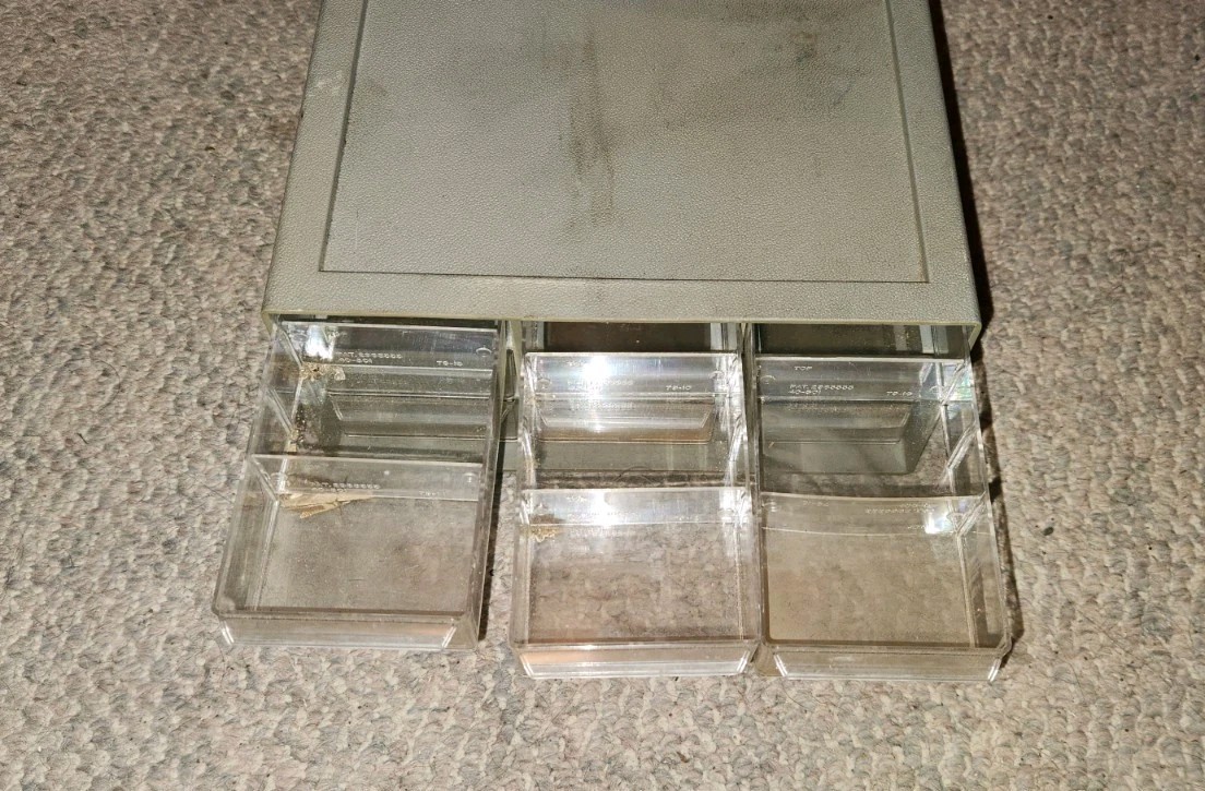 Vintage Akro Mils 10-109 9 Drawer Storage Bins Nuts Bolts Grey Small Clear