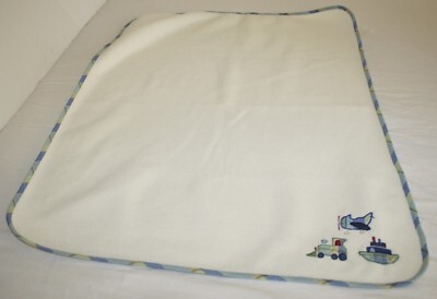 Koala Baby Plane Train Boat Boys Baby Blanket Blue Green Cream Fleece Plaid Trim
