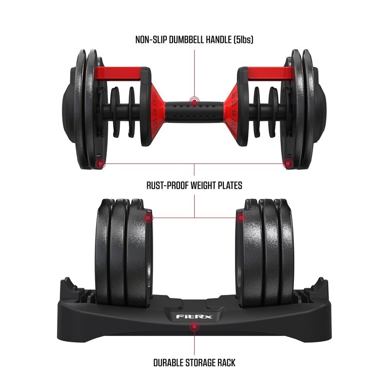 FitRx SmartBell, Quick Select Adjustable Dumbbell, 5-52.5 Lb.