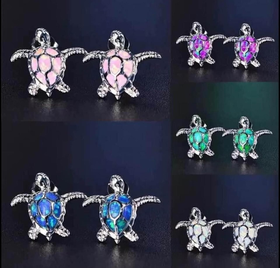 Beautiful Opal Sea Turtle BLUE Miniature Stud Earrings Darling Sea Turtles