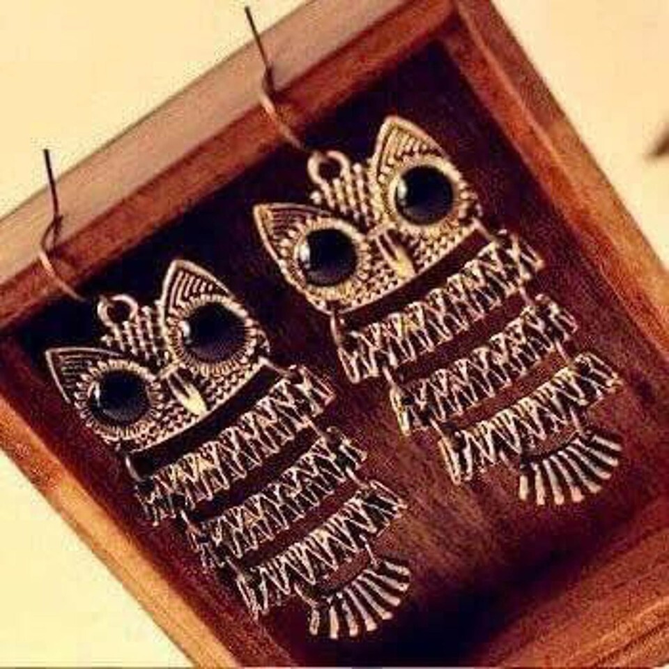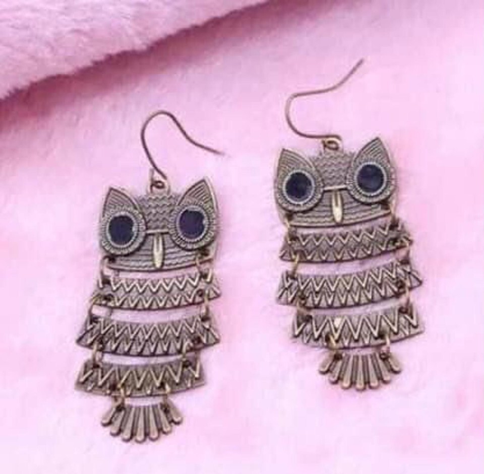 New Super Cute Sassy Chandelier Bronze Owl EarringsBeautiful Big Black Eyes