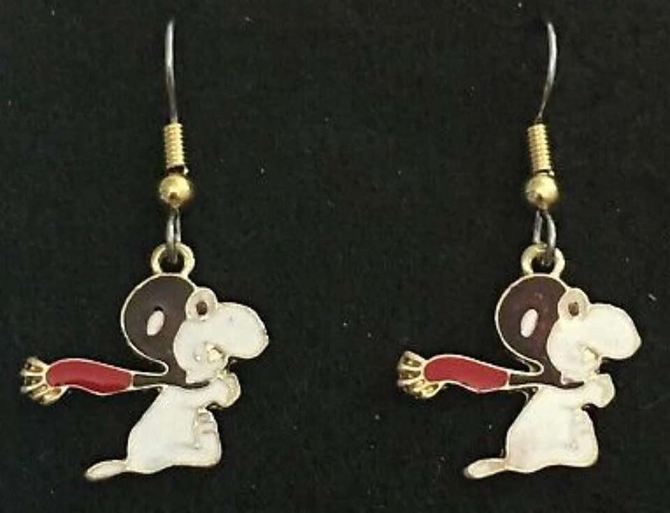 New Super Cute Snoopy Red Baron Flying Enamel Earrings