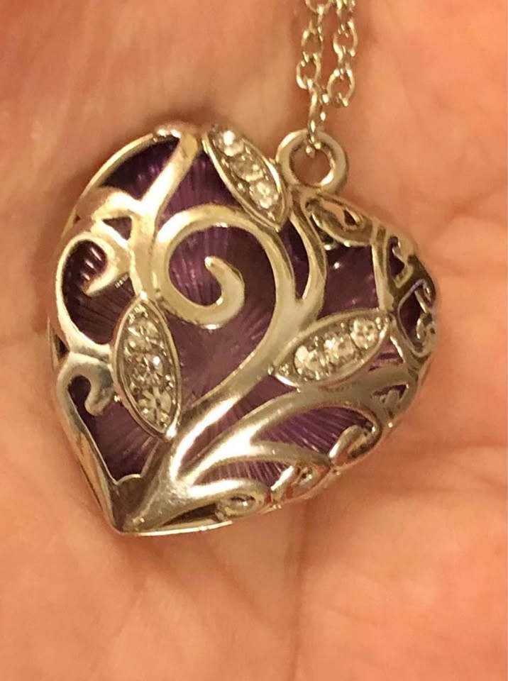 Purple Heart ? Inside Caged Heart trimmed in Pretty Clear Rhinestones