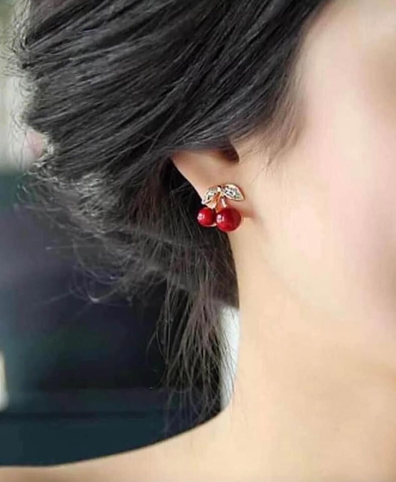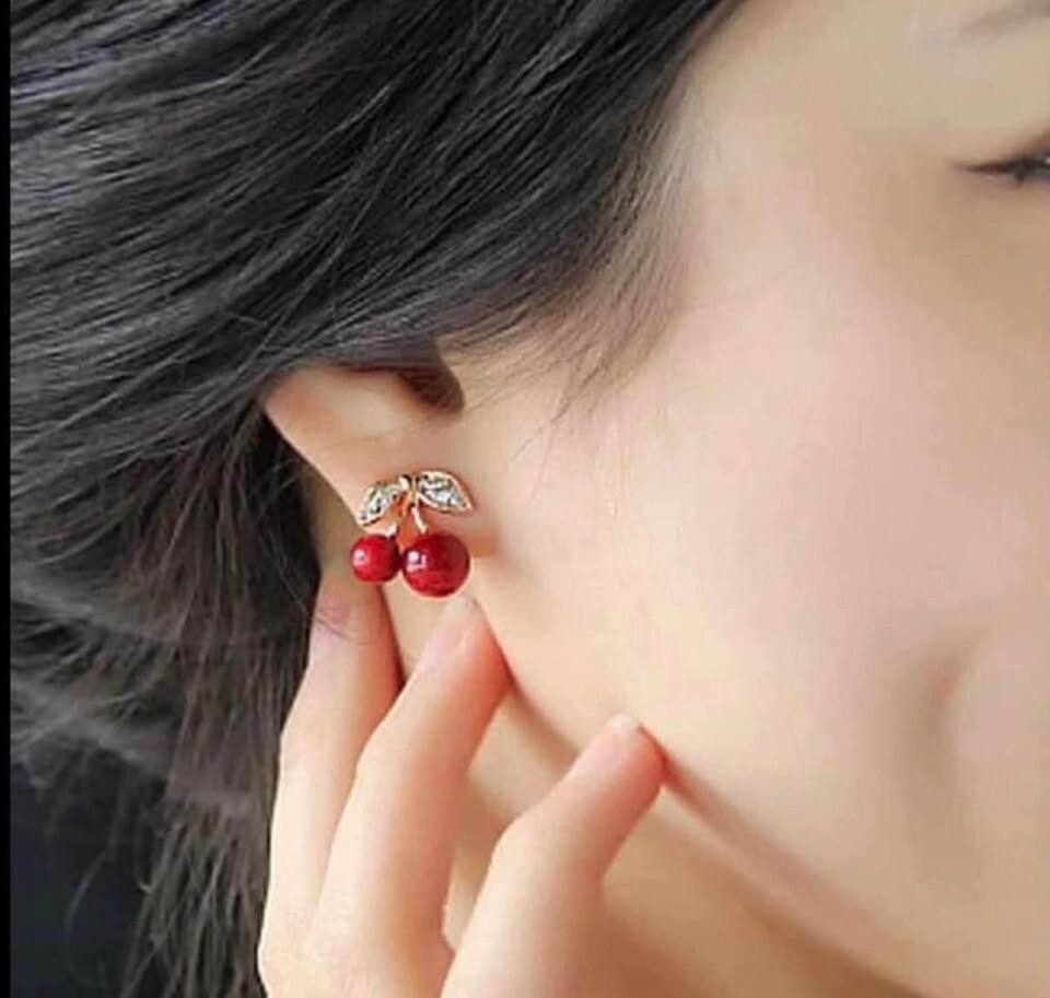 New Adorable BeautifulRed Cherries Rhinestone Stud Earrings 100% Cuteness!!!