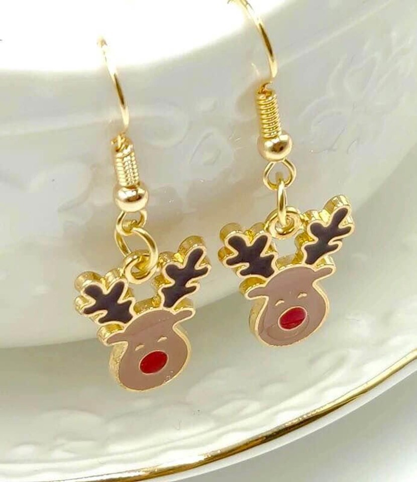 New Cute Miniature Rudolph Reindeer Dangle Earrings