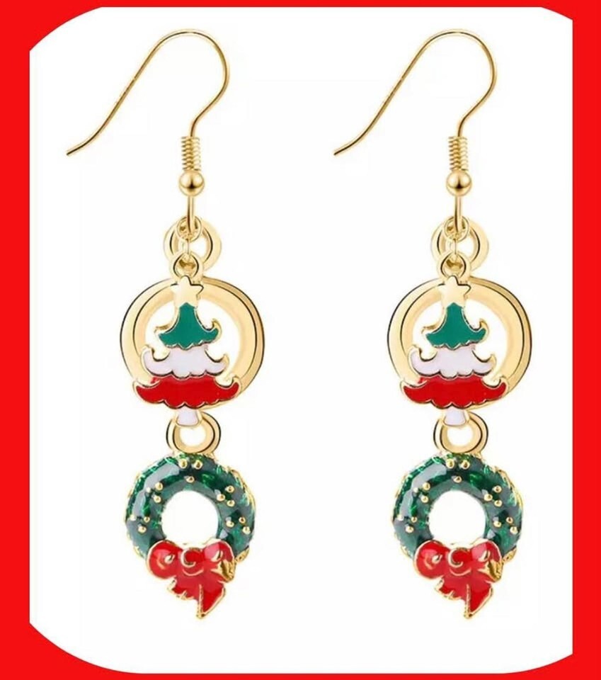 New Pretty Christmas Enamel Dangle Double Tier Earrings