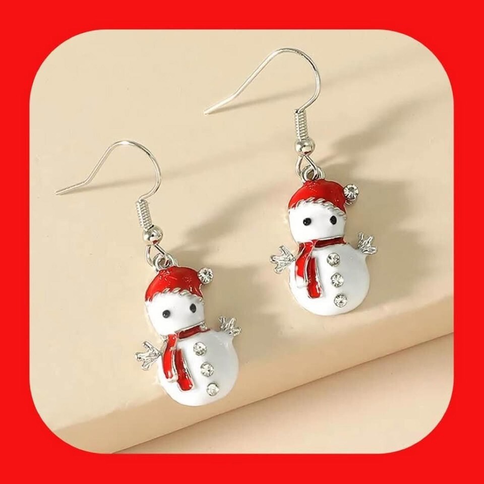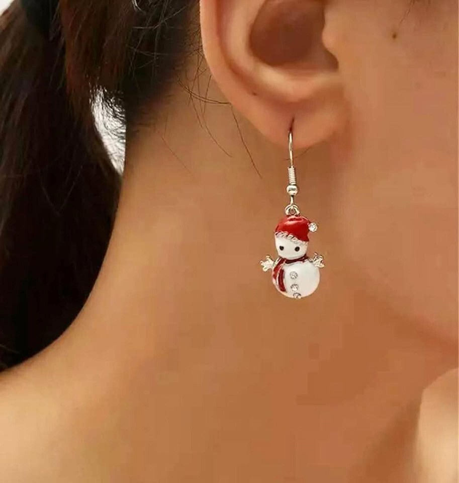 Wear the earrings to complement your Christmas outfit perfectly, it features a red hat and white snowflakes that come to life like a real snowman.