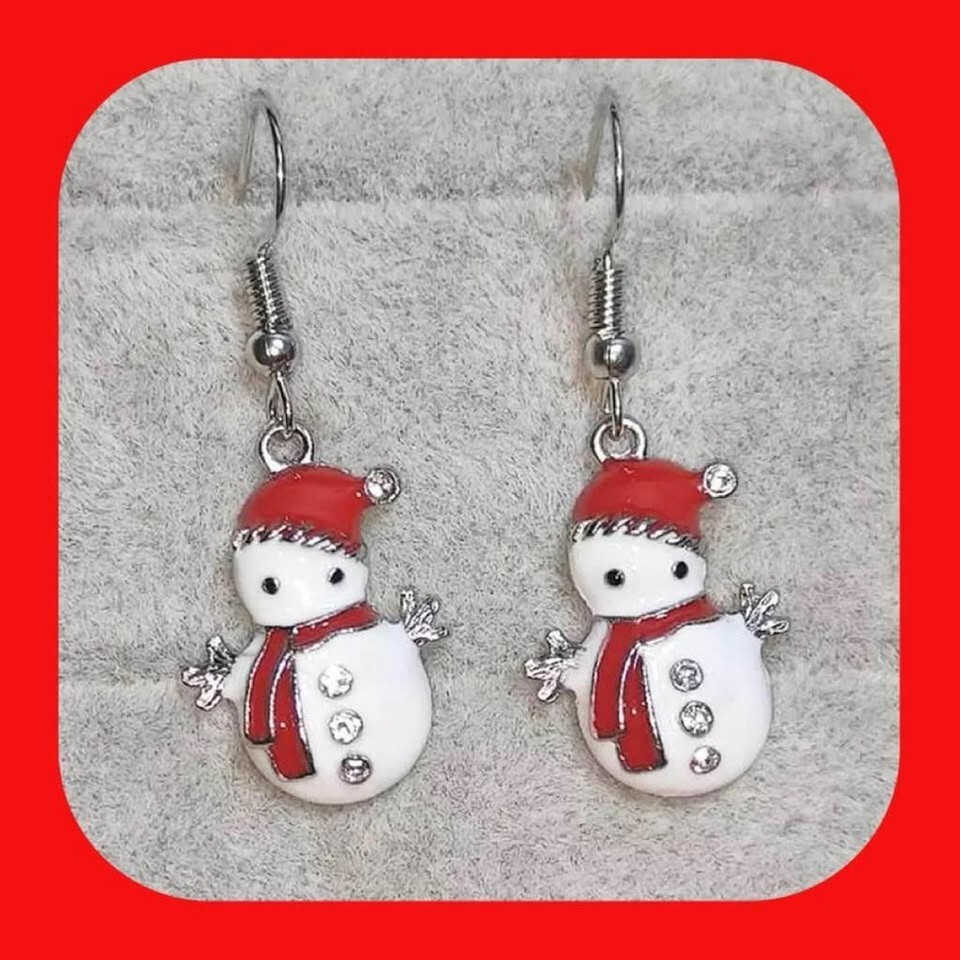 New Super Cute Enamel Snowman ⛄️ Dangle Rhinestone Earrings Perfect Gift