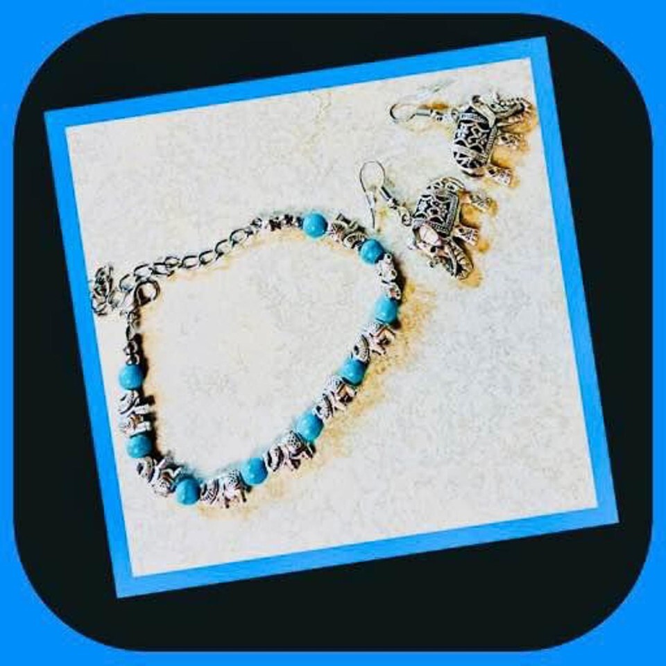 New Beauty “Elephant”Turquoise Bead Bracelet & Earrings Set (Last One)
