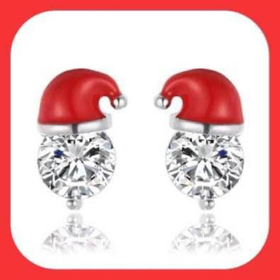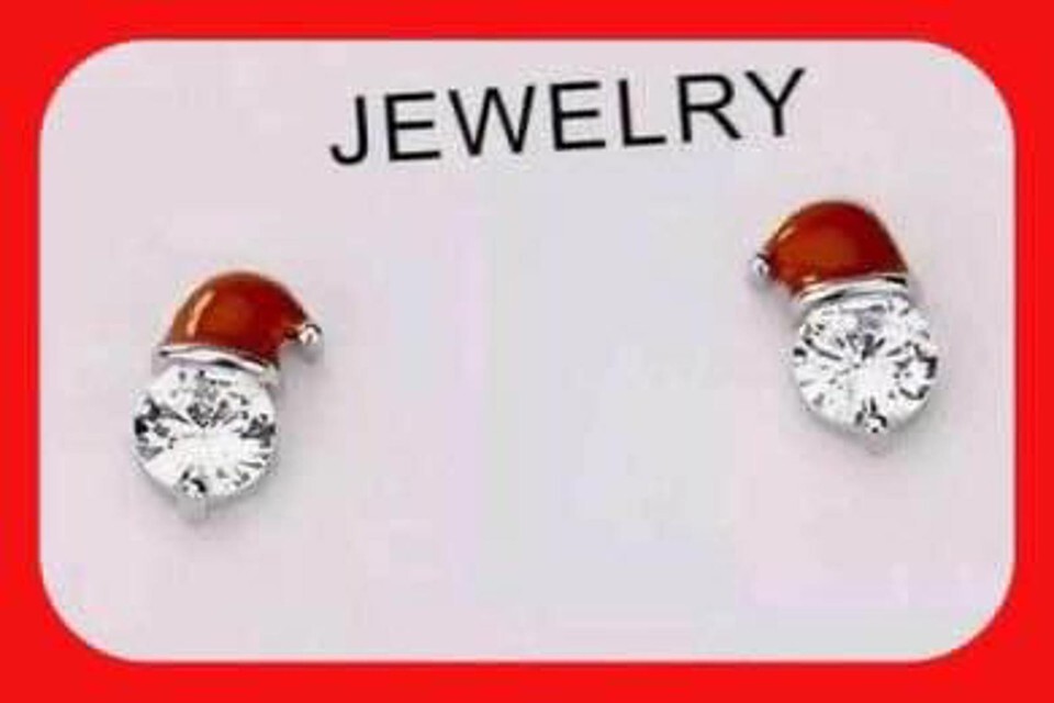 New Absolutely Adorable Santa Hat Rhinestone Stud Earrings So Cute!