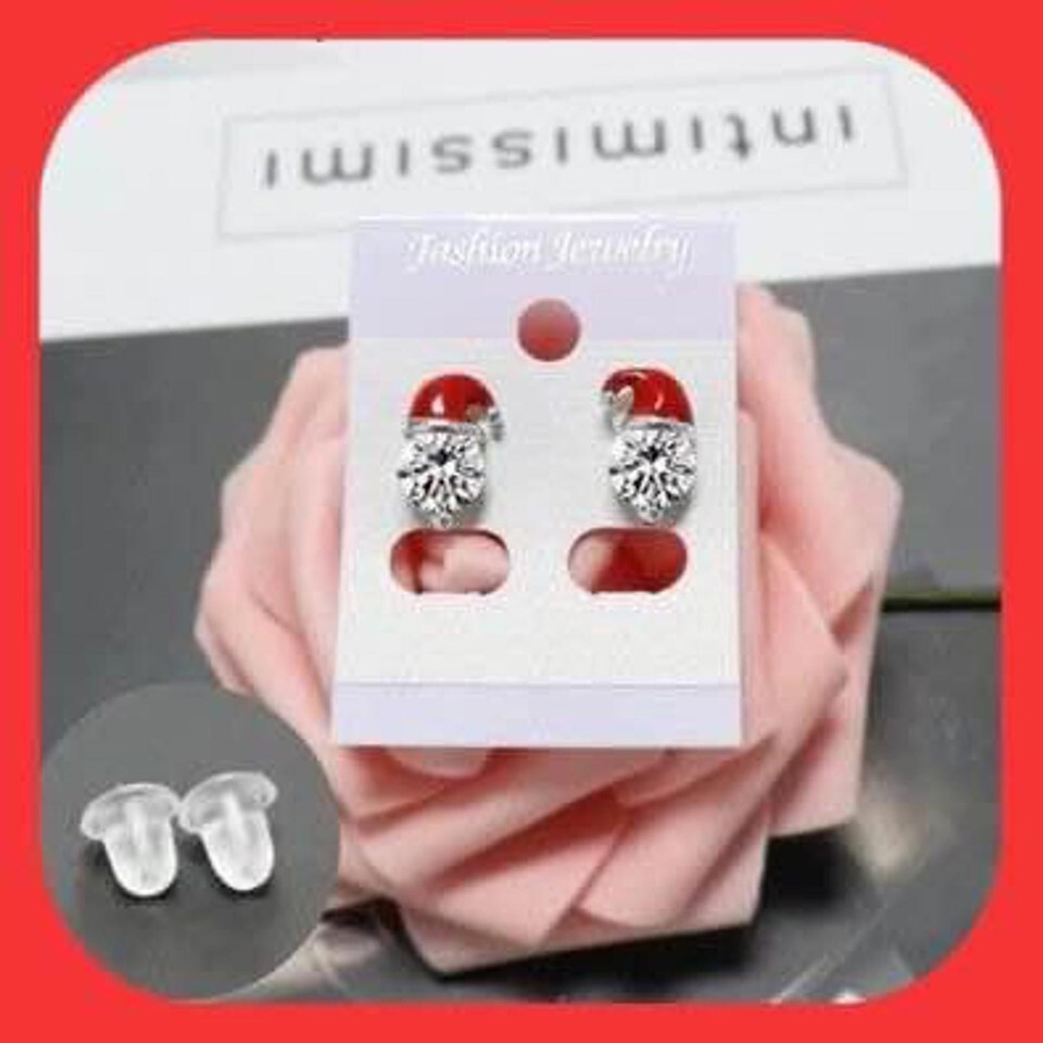 New Absolutely Adorable Santa Hat Rhinestone Stud Earrings