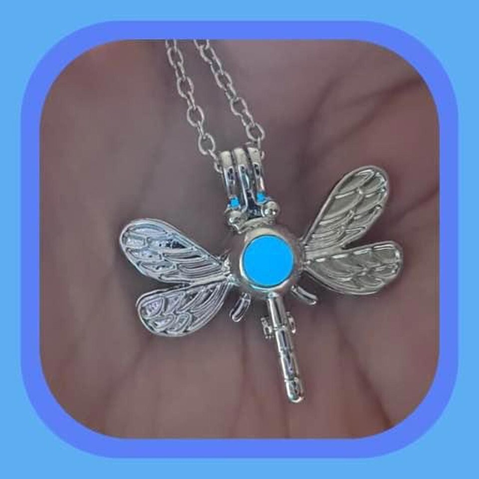 New Stunning Beautiful Dragonfly Luminous Solar Pendant Necklace ~ Blue
