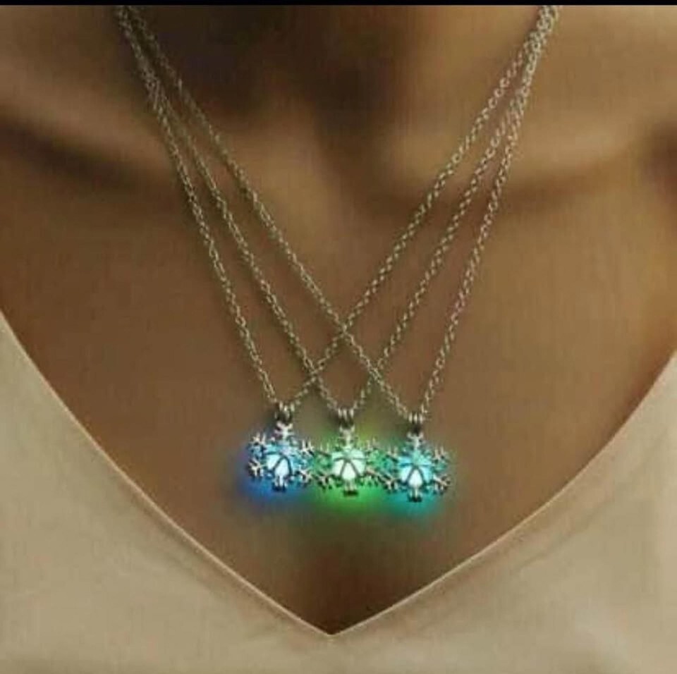 New Gorgeous Winter ?? BLUE/SILVER Snowflake ?? Solar Luminous Necklace