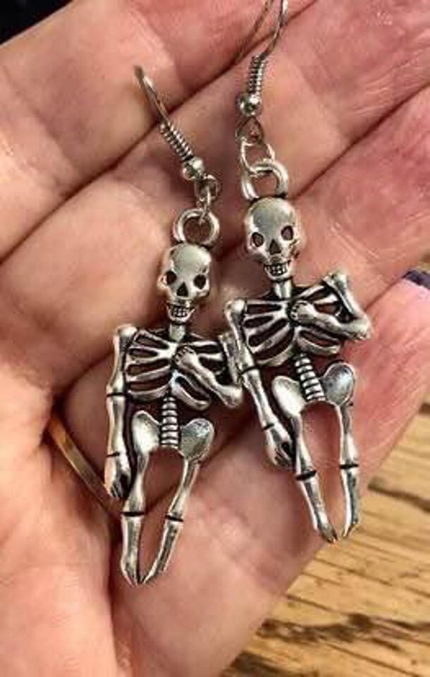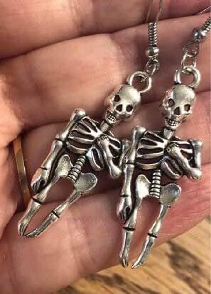 New Retro Full Skeleton Holding ?? Heart Earrings