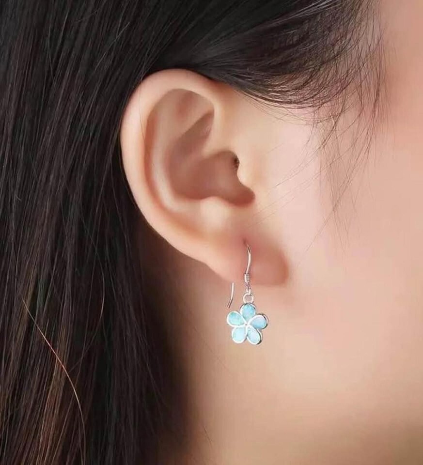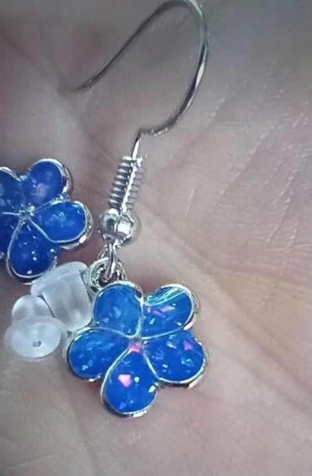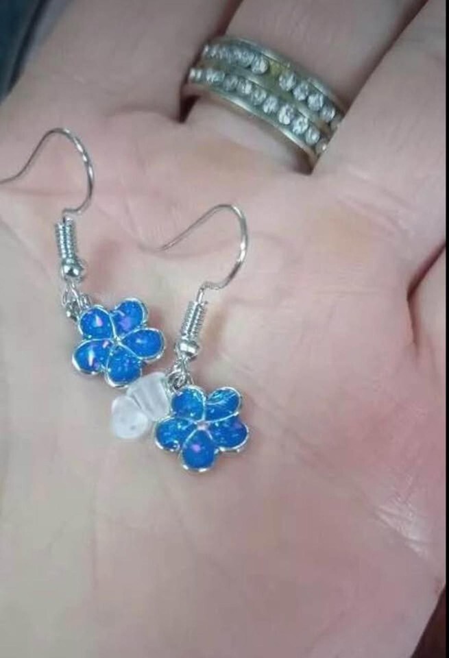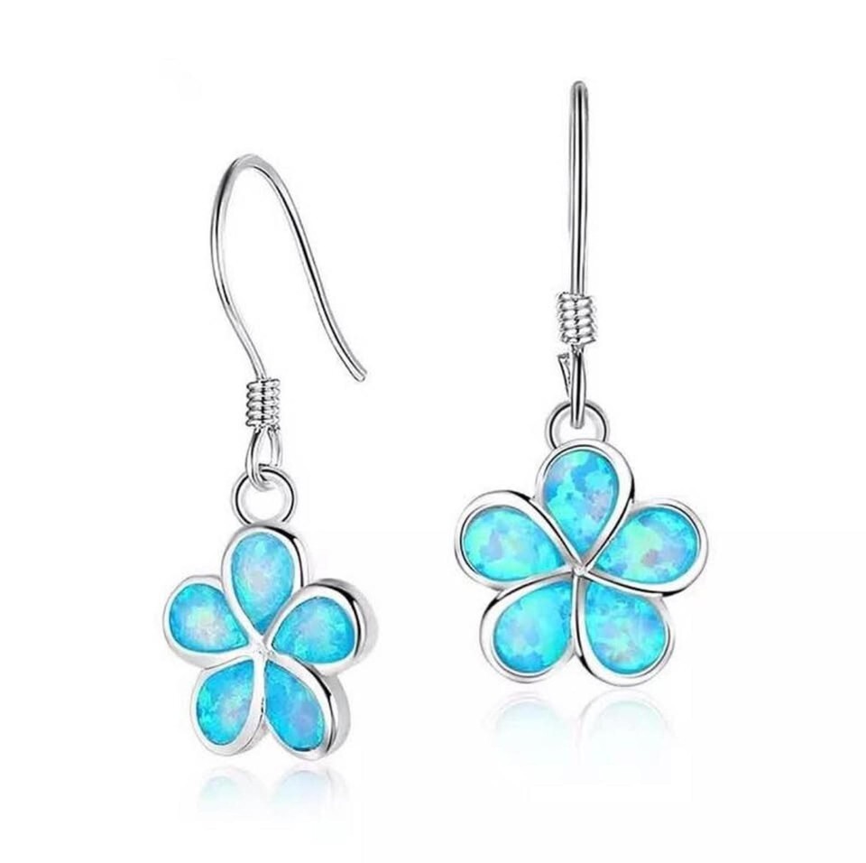 Unique Beauty Blue Opal Flower ? Dangle Earrings