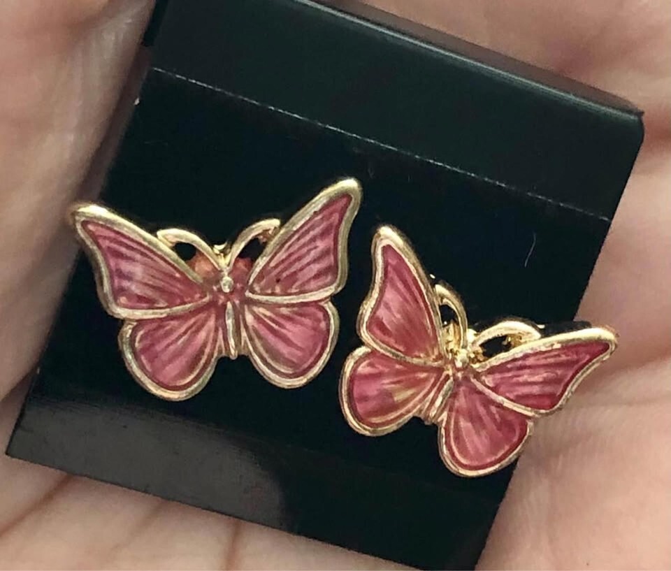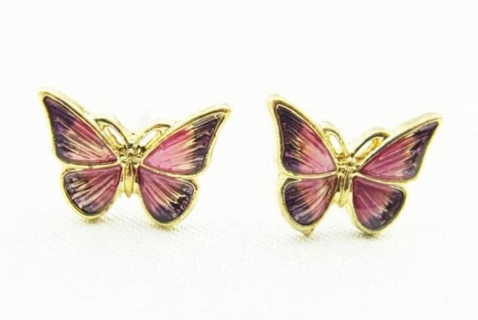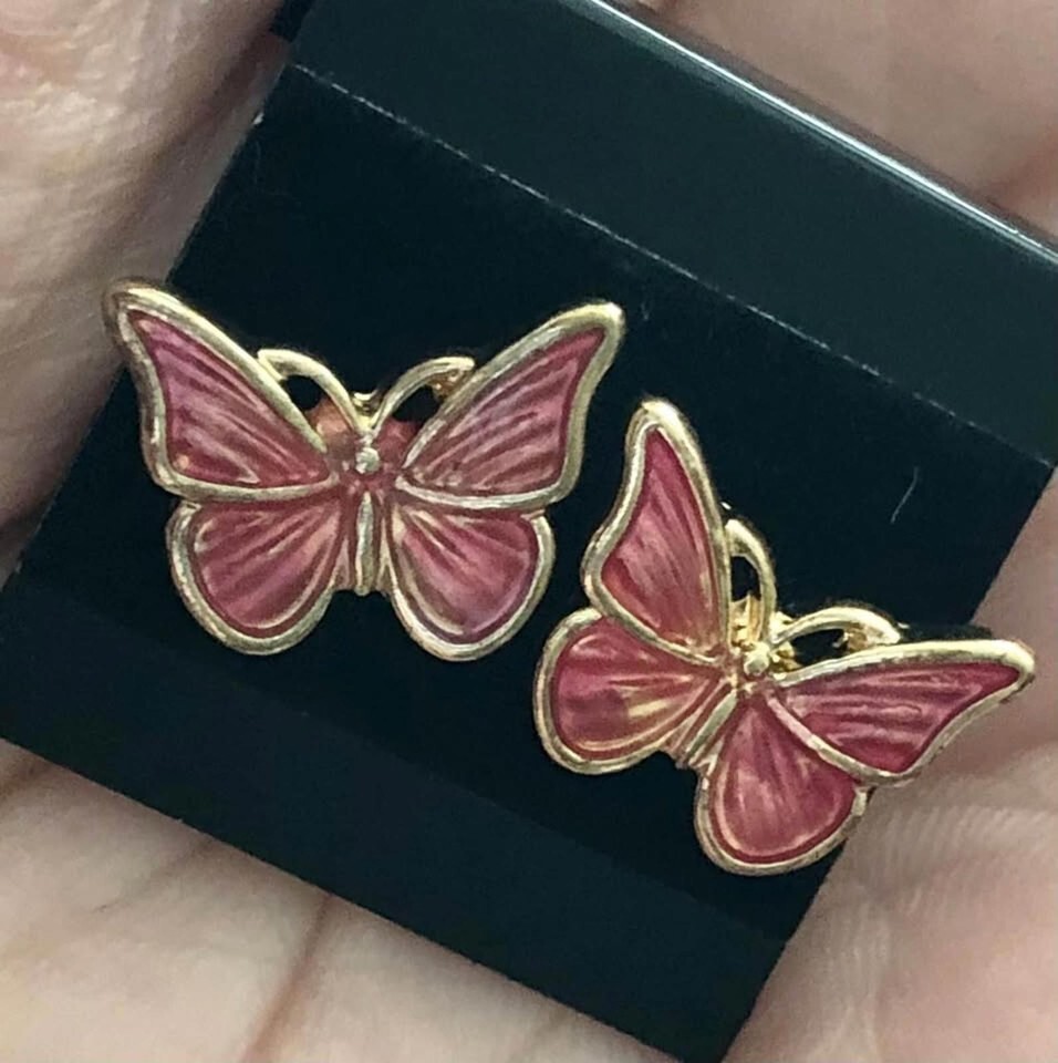 New Beautiful Miniature Pink Enamel Butterfly Stud Earrings Limited Quantities!