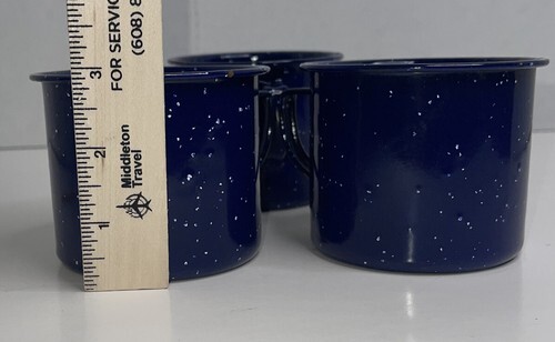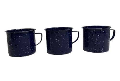 VTG Enamelware Blue Graniteware Coffee Tea Mug Cup Camping Rustic Lot Of 3