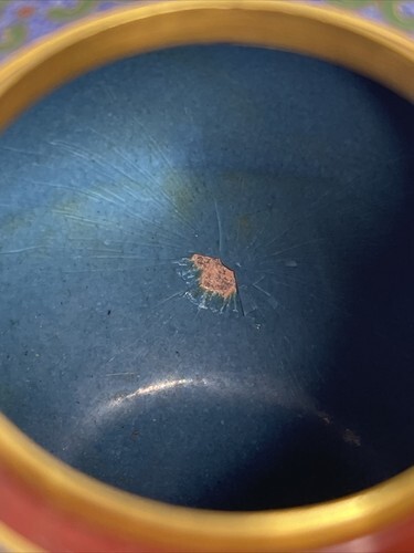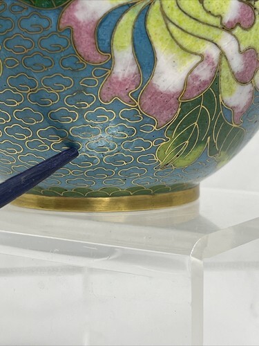 ANTIQUE CHINESE CLOISONNE GINGER JAR FLOWER PEONY FlORAL VASE LID BLUE TEAL FLAW