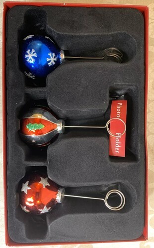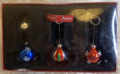 Condition: Used. Box photos holders shows ware from storage and use. The ornament with Christmas ? trees on it has a chip (see photo). (Please review all pictures before purchasing because they are part of the description and helps to determine condition).