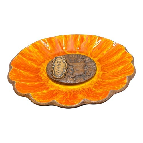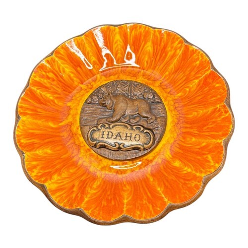Vintage Treasure Craft Idaho Souvenir Ashtray Dish Red Orange Yellow America USA