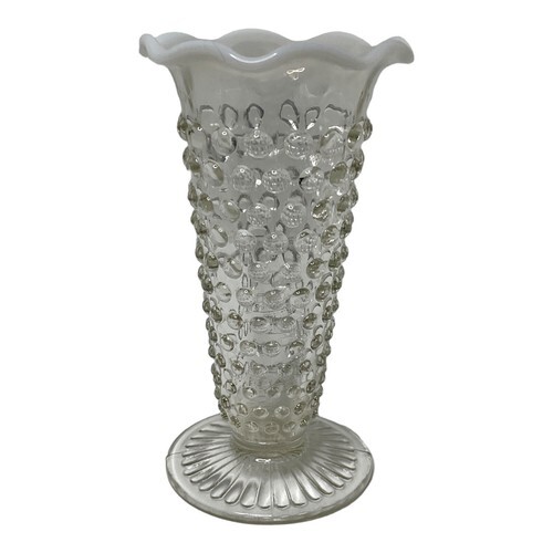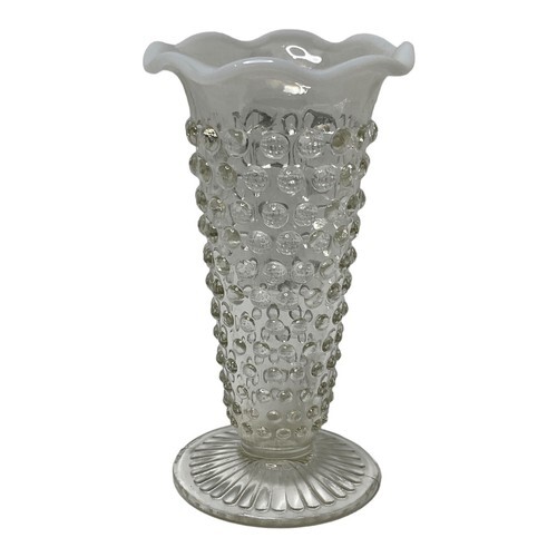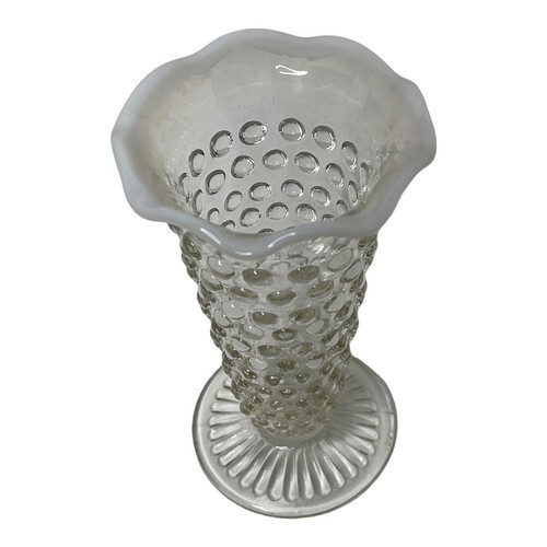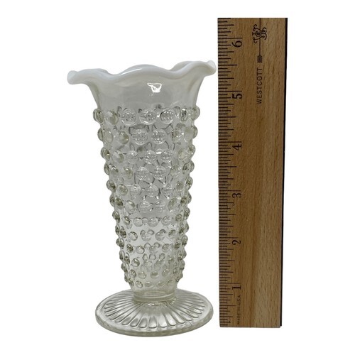 Vintage Anchor Hocking Moonstone Glass Bud Vase, 5.5" White Opalescent Hobnail