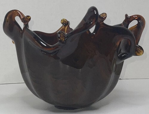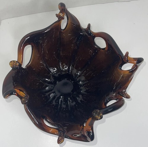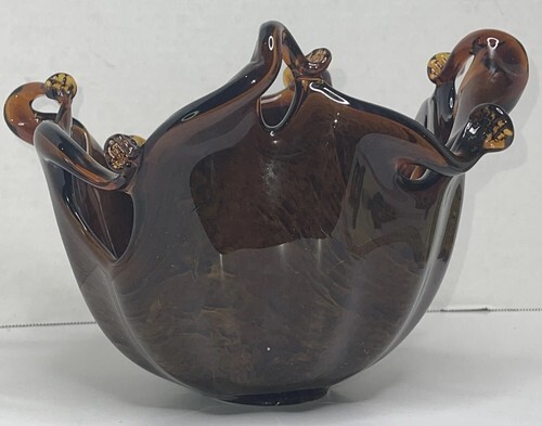 Genuine Murano Art Glass Bowl Fiery Brown Fire Italy by White Crystal Rare.