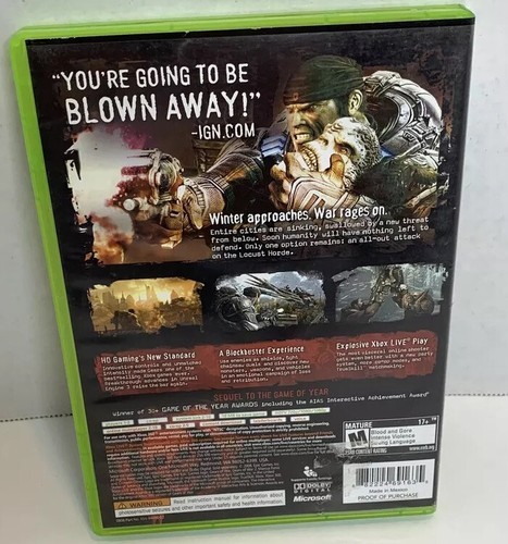 Gears of War 2 (Microsoft Xbox 360, 2008) Video Game.