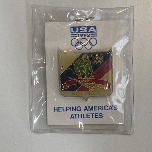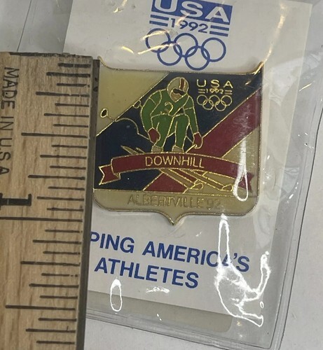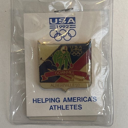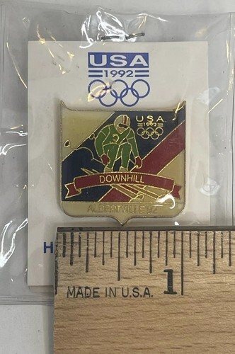 1992 ALBERTVILLE OLYMPICS DOWNHILL SKIING TEAM USA CLOISONNE LAPEL PIN AMERICA.