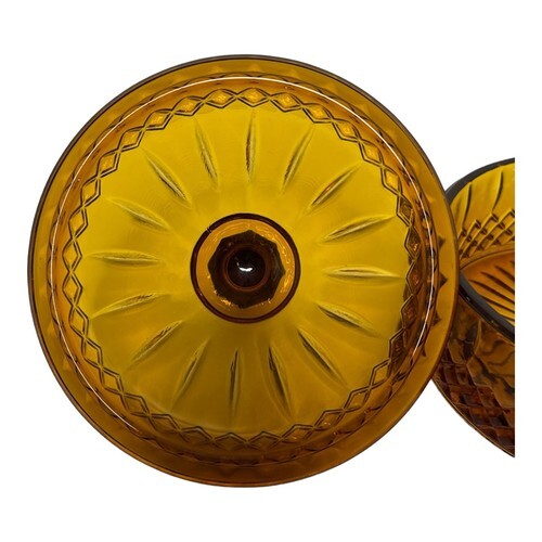 Indiana Glass Amber Candy Dish and Lid Princess Pattern Vintage Gold Orange